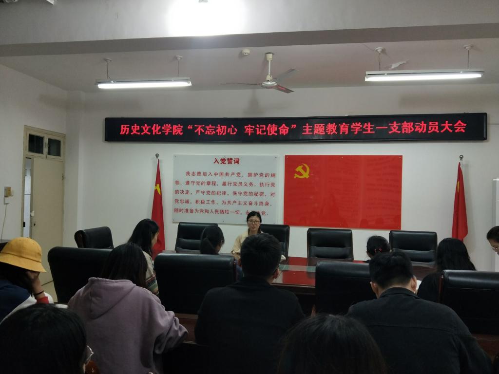9月29日中午,学生一支部在人文楼党员之家召开了“不忘初心、牢记使命”主题教育动员大会。支部书记付亚男同志向学生党员们传达了学院党委主题教育实施方案,并带领学生党员们重温了党员义务和权利,她强调作为一名党员就要将入党誓词牢记心中,时刻铭记共产党员的初心。
